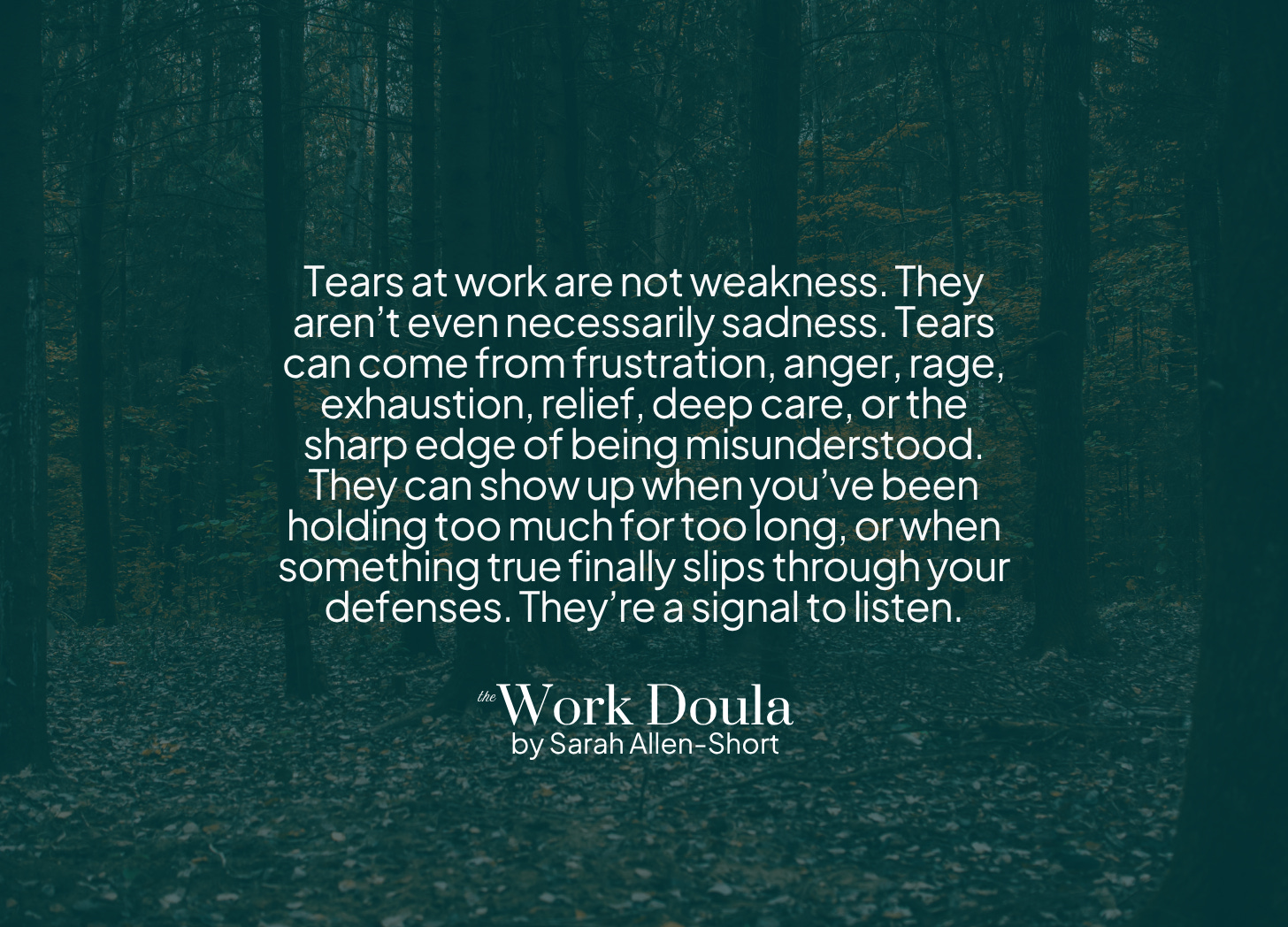 What I know now is that crying at work isn’t a failure of professionalism. It’s information. It’s the body saying, something here matters more than you’ve admitted.