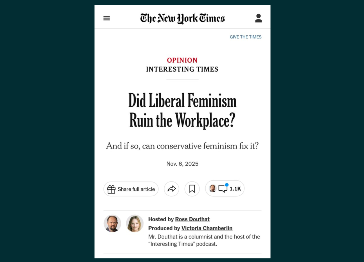 When I saw the headline “Did Liberal Feminism Ruin the Workplace” from The New York Times, I knew exactly what I was walking into.